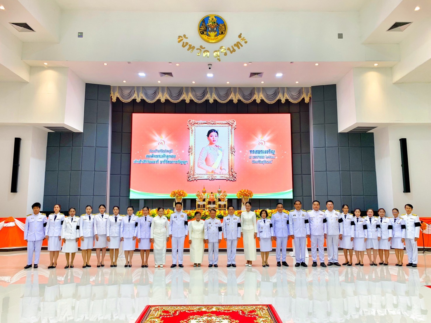 วันที่ 8 มกราคม 2569 เวลา 07.30 น. นายสัตวแพทย์อภิชัย นาคีสังข์ ปศุสัตว์จังหวัดสุรินทร์ พร้อมด้วยนายสัตวแพทย์ จรูญวิทย์ นะพรรัมย์ หัวหน้ากลุ่มพัฒนาสุขภาพสัตว์ ร่วมพิธีเฉลิมพระเกียรติสมเด็จพระเจ้าลูกเธอ เจ้าฟ้าสิริวัณณวรี นารีรัตนราชกัญญา เนื่องในโอกาสวันคล้ายวันประสูติ 8 มกราคม 2569 ณ หอประชุมจังหวัดสุรินทร์ ศูนย์ราชการจังหวัดสุรินทร์ โดยมี นายจำเริญ แหวนเพ็ชร ผู้ว่าราชการจังหวัดสุรินทร์ เป็นประธานในพิธี