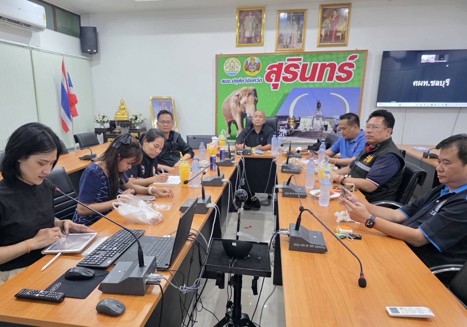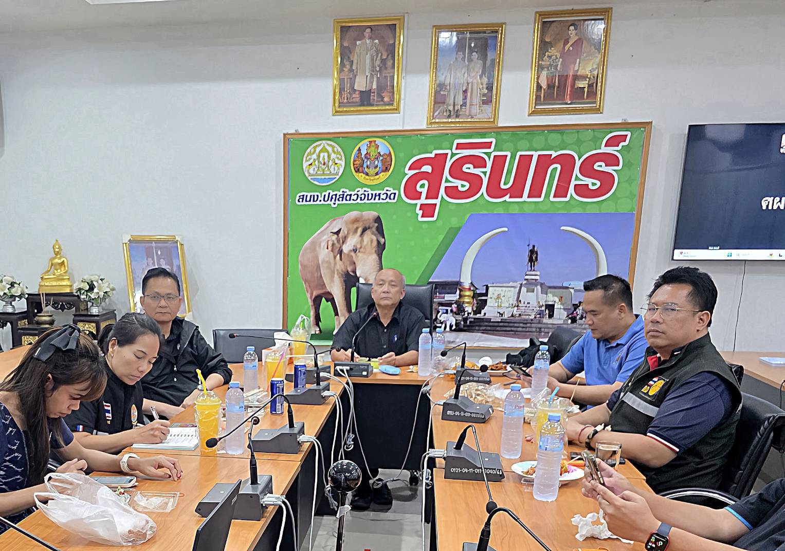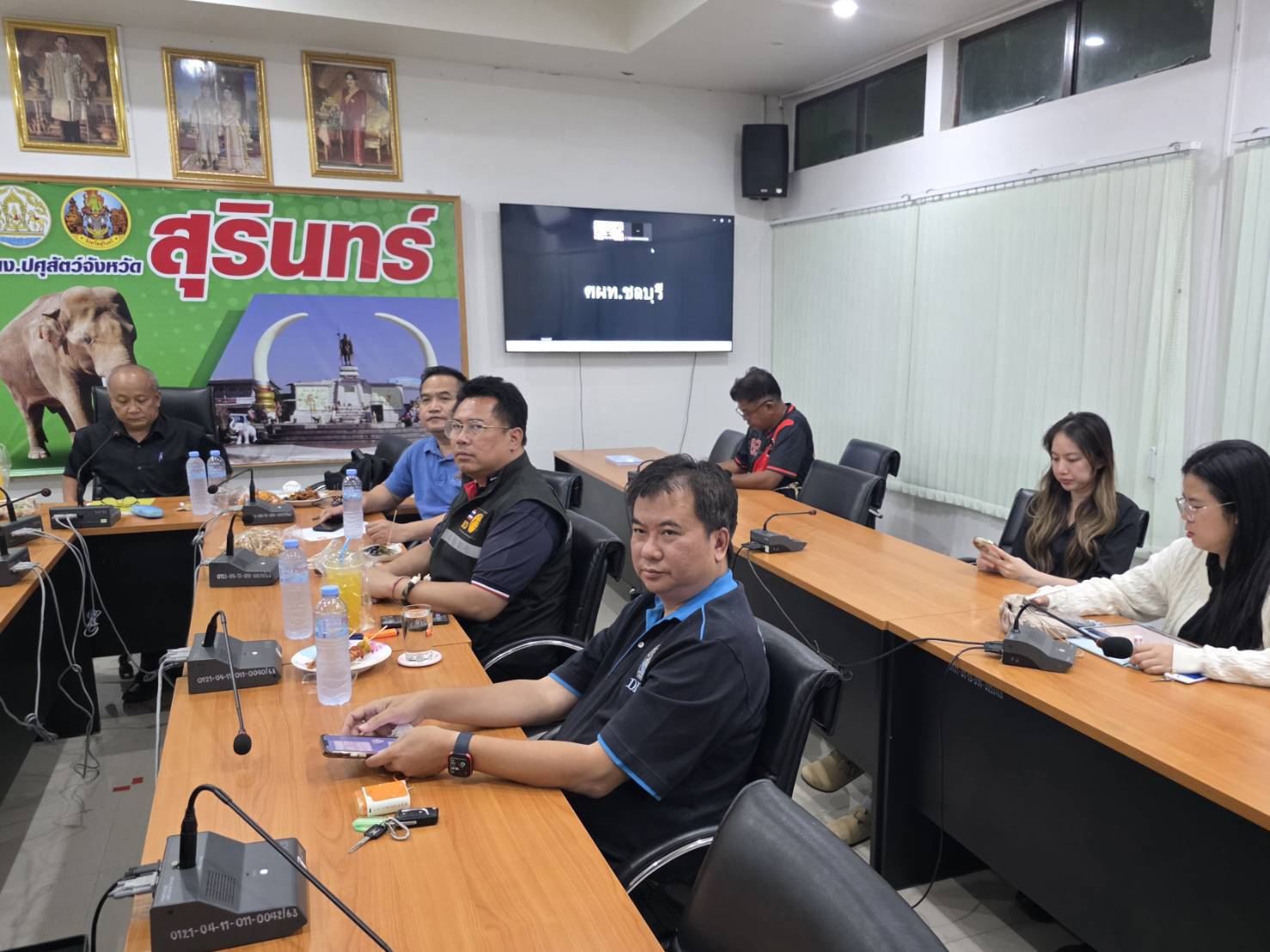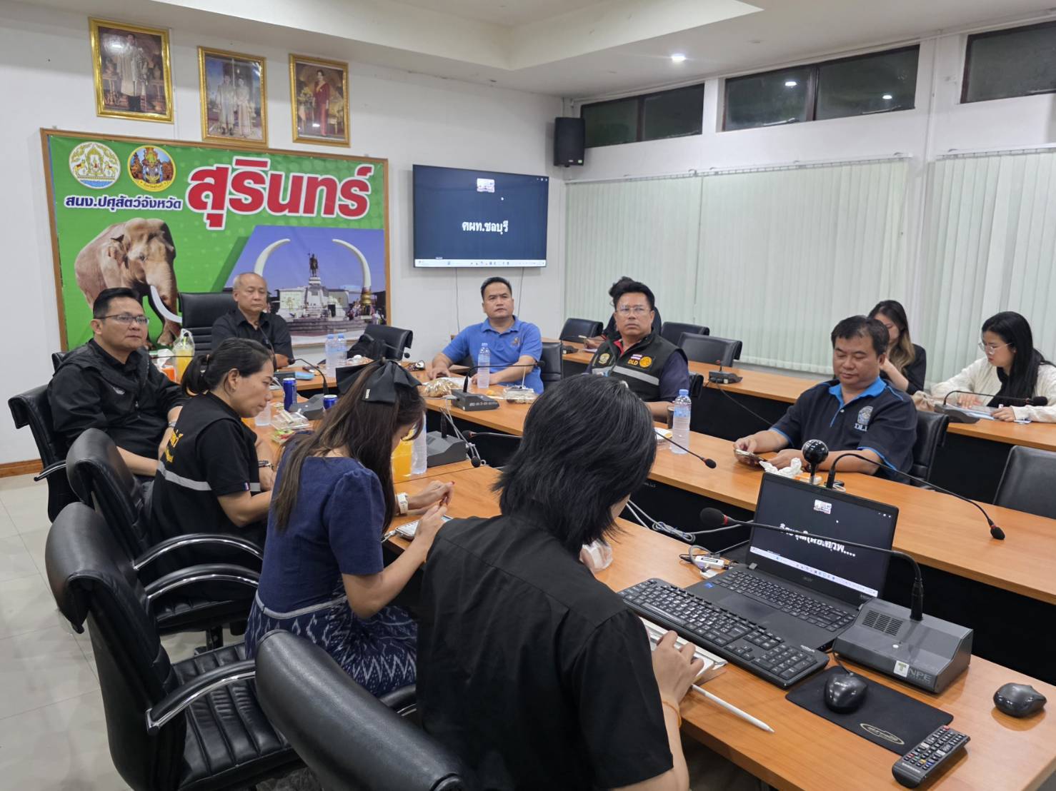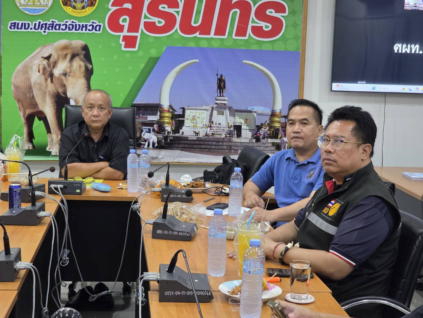 วันอังคารที่ 2 ธันวาคม 2568 เวลา 18.30 น. น.สพ.อดิศร ชาติสุภาพ ปศุสัตว์เขต 3 น.สพ.อภิชัย นาคีสังข์ ปศุสัตว์จังหวัดสุรินทร์ หัวหน้ากลุ่มฝ่าย ปศุสัตว์อำเภอหัวหน้าด่านกักกันสัตว์ และเจ้าหน้าที่สำนักงานปศุสัตว์จังหวัดสุรินทร์ เข้าร่วมประชุมหารือแนวทางการจัดการโรคระบาดสัตว์ในพื้นที่จังหวัดสุรินทร์ โดยการประชุมเป็นไปในแนวทางสรุปการดำเนินงานประจำวัน ด้านการรักษาสัตว์ การฉีดวัคซีนสัตว์ในพื้นที่อำเภอจังหวัดสุรินทร์ และการดำเนินการต่างๆเพื่อเป็นไปในการควบคุมโรคระบาดในสัตว์ ในการนี้ มี น.สพ.ณรงค์ เลี้ยงเจริญ ผู้อำนวยการสำนักควบคุม ป้องกัน และบำบัดโรคสัตว์ เป็นประธานในการประชุม ณ ห้องประชุมสำนักงานปศุสัตว์จังหวัดสุรินทร์