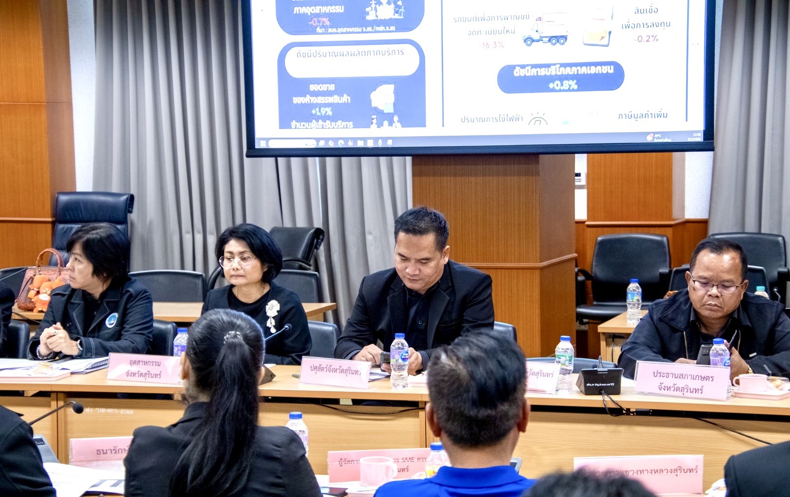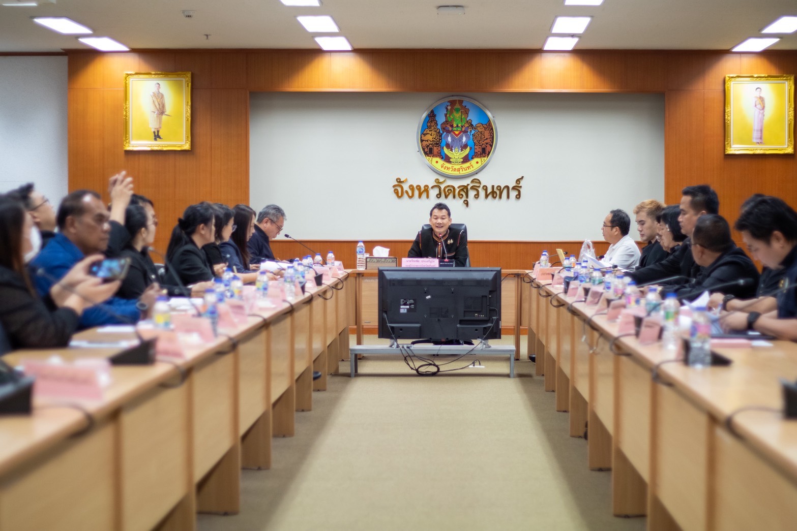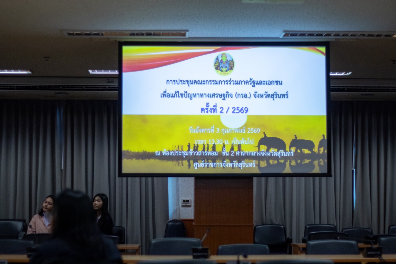 วันที่ 3 กุมภาพันธ์ 2569 เวลา 13.30 น. นายสัตวแพทย์อภิชัย นาคีสังข์ ปศุสัตว์จังหวัดสุรินทร์ เข้าร่วมประชุม คณะกรรมการร่วมภาครัฐและเอกชนเพื่อแก้ไขปัญหาทางเศรษฐกิจ (กรอ.) จังหวัดสุรินทร์ ครั้งที่ 2 / 2569 ณ ห้องประชุมข้าวสารหอม ชั้น 2 ศาลากลางจังหวัดสุรินทร์ โดยมีประเด็นสำคัญเรื่องของการส่งเสริมผลิตภัณฑ์ข้าวสุรินทร์ การนำงานวิจัยที่เกี่ยวข้องกับผลิตภัณฑ์การเกษตรออกมาเผยแพร่เพื่อพัฒนาและเพิ่มมูลค่าให้สินค้า เรื่องการส่งเสริมการท่องเที่ยวภายในจังหวัด เรื่องของการขอปรับแก้ไขผังเมืองรวมจังหวัดสุรินทร์ การแก้ไขปัญหาน้ำท่วมในพื้นที่บ้านหนองเต่า ต.เฉนียง อ.เมือง จ.สุรินทร์ และการขอขยายถนนเส้น อ.ปราสาท เข้าสู่ ตัวอ.เมือง จังหวัดสุรินทร์ โดยมีนายวีระชัย ประเสริฐโส รองผู้ว่าราชการจังหวัดสุรินทร์ เป็นประธานการประชุม