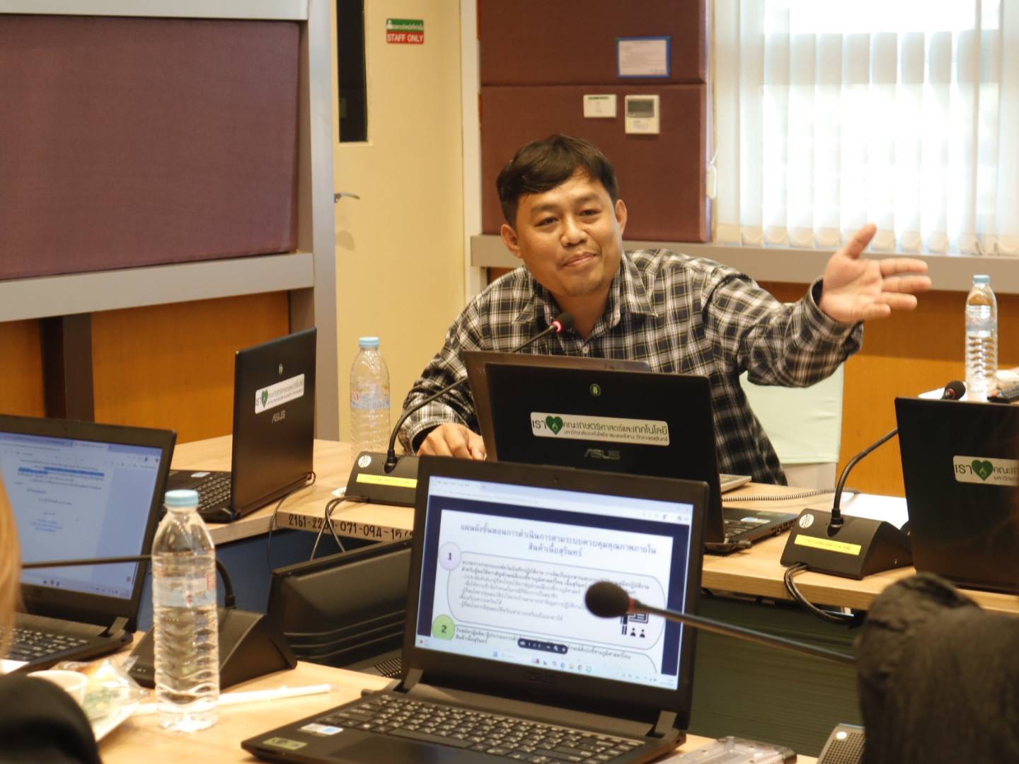 วันที่ 18 ธันวาคม 2568 น.สพ.อภิชัย นาคีสังข์ ปศุสัตว์จังหวัดสุรินทร์ มอบหมายให้ นายสุพิน นองมัน หัวหน้ากลุ่มส่งเสริมและพัฒนาการปศุสัตว์ นายณรงค์ ศิริดล นักวิชาการสัตวบาลปฏิบัติการ นางนงนุช พรรคฐิน นักวิชาการสัตวบาลปฏิบัติการ สพ.ญ.ปิยชนก ธนเกียรติสกุล นายสัตวแพทย์ปฏิบัติการ บูรณาการร่วมกับมหาวิทยาลัยเทคโนโลยีราชมงคลอีสาน วิทยาเขตสุรินทร์ เข้าร่วมประชุมเพื่อแจ้งแผนและกำหนดระยะเวลาดำเนินงานโครงการจัดทำระบบบควบคุมคุณภาพและมาตรฐานสินค้าสิ่งบ่งชี้ทางภูมิศาสตร์ไทย (Internal Control) สินค้าเนื้อสุรินทร์” พร้อมคณะกรรมการผู้มีหน้าที่่ตรวจสอบสินค้าบ่งชี้ทางภูมิศาสตร์ไทยสินค้าเนื้อสุรินทร์ ครั้งที่ 1/2568 ณ ห้องประชุมข้าวหอมนิล ชั้น 3 อาคารอาทิตยาทร คณะเกษตรศาสตร์และเทคโนโลยี มหาวิทยาลัยเทคโนโลยีราชมงคลอีสาน วิทยาเขตสุรินทร์ มีผู้ร่วมสังเกตุการณ์ นางเคียงเดือน สงวนชื่อ ประธานกลุ่มวิสาหกิจชุมชนโคขุนสุรินทร์โกเบครบวงจร นายปรีดี อมรกาญจนวัฒน์ ผู้จัดการ เนื้อดี Beef good นางดวงใจ หลิน ผู้จัดการหจก.เอส.เจ.ดวงใจฟาร์ม อ.เมืองสุรินทร์ นางมาลัย จงเจริญ ผู้จัดการ Sren beef farm อำเภอเมืองสุรินทร์ นายจักรพงษ์ สอนบุญ ผู้จัดการบารมีฟาร์ม เพื่อให้การผลิตเป็นไปตามข้อกำหนดไว้ และร่วมวางแนวทางการดำเนินงานให้เป็นไปในทิศทางเดียวกัน