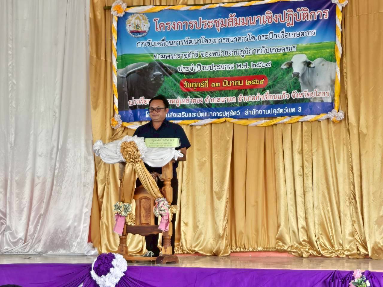 ร่วมประชุมสัมมนาเชิงปฏิบัติการ การขับเคลื่อนการพัฒนาโครงการธนาคารโค-กระบือเพื่อเกษตรกร ตามพระราชดำริ ณ โรงเรียนบ้านนาหลู่เหล่าตอง ตำบลนาแก อำเภอคำเขื่อนแก้ว จังหวัดยโสธร