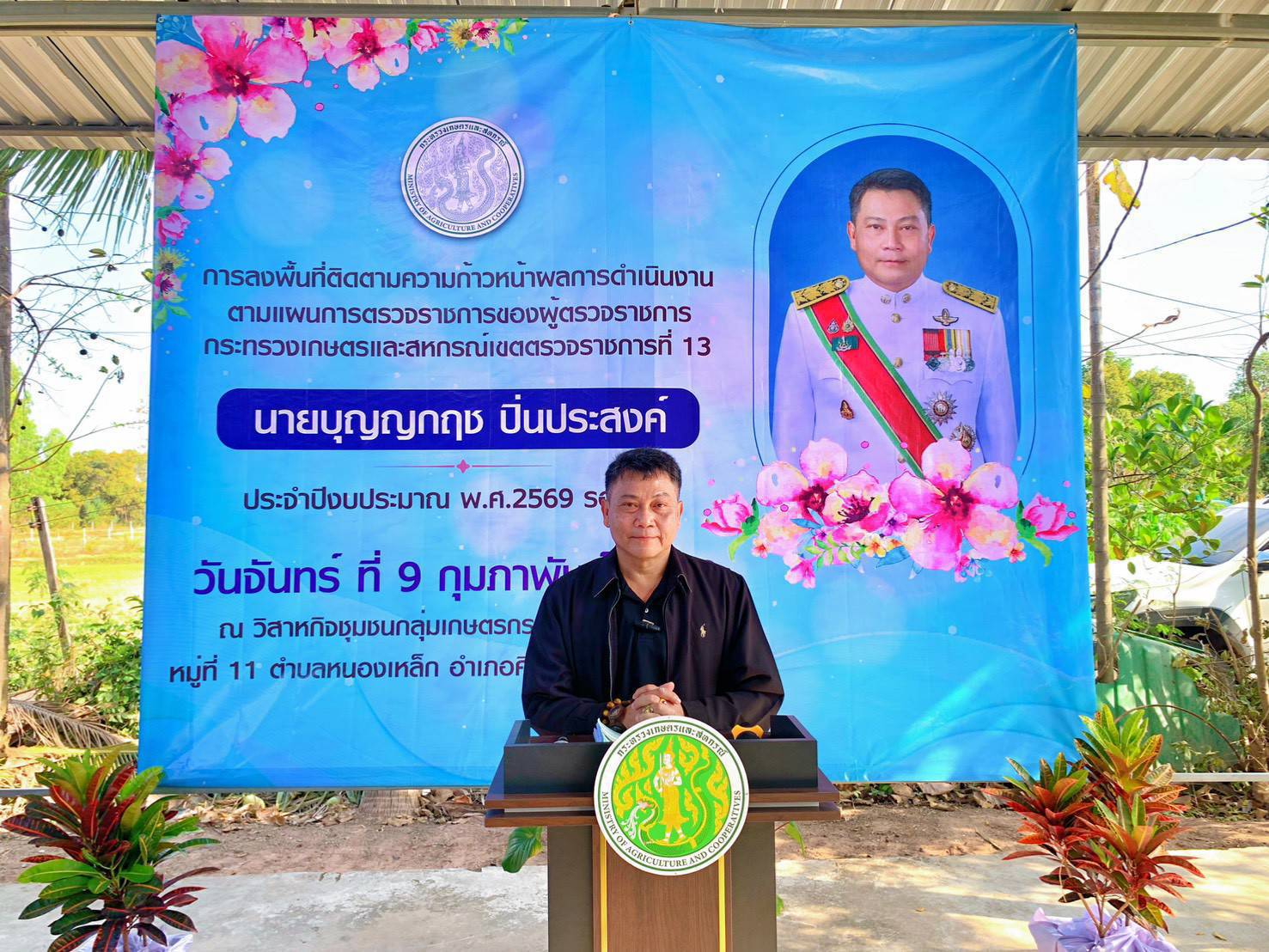 วันที่ 9 กุมภาพันธ์ 2569 นายสัตวแพทย์อภิชัย นาคีสังข์ ปศุสัตว์จังหวัดสุรินทร์ พร้อมด้วย นายสัตวแพทย์ประยูร พรมไธสง นายสัตวแพทย์ชำนาญการพิเศษ นางสาวจันทรา โพธิ์คำ ปศุสัตว์อำเภอศีขรภูมิ และเจ้าหน้าที่ปศุสัตว์อำเภอศีขรภูมิ ร่วมต้อนรับ นายบุญญกฤช ปิ่นประสงค์ ผู้ตรวจราชการกระทรวงเกษตรและสหกรณ์ เขตตรวจราชการที่ 13 จังหวัดสุรินทร์ เพื่อตรวจติดตามการดำเนินงานตามแผนการตรวจราชการ ประจำปีงบประมาณ พ.ศ. 2569 รอบเช้า ณ วิสาหกิจชุมชนกลุ่มเกษตรกรรมยั่งยืนบ้านไทร หมู่ที่ 11 ตำบลหนองเหล็ก อำเภอศีขรภูมิ จังหวัดสุรินทร์