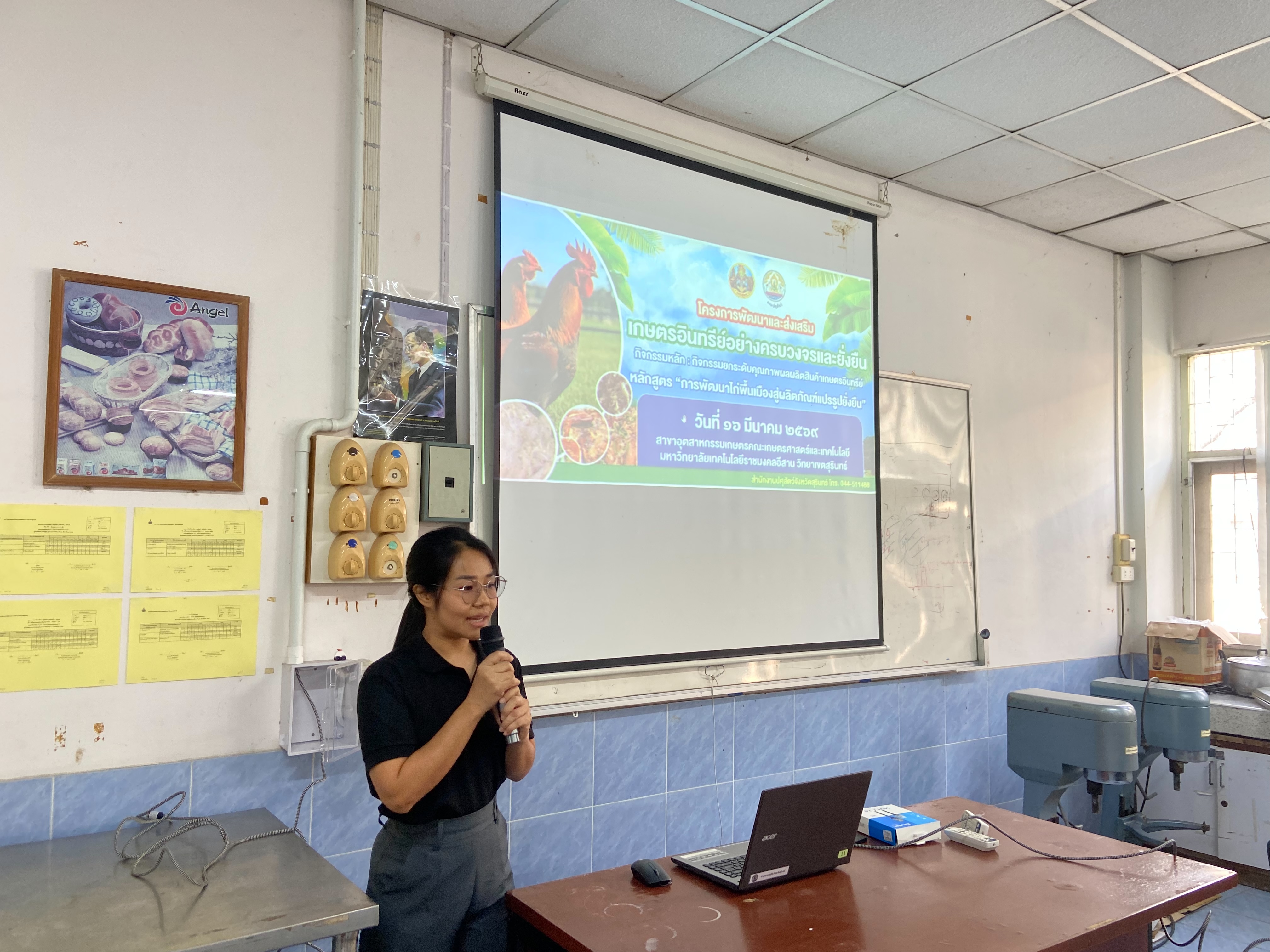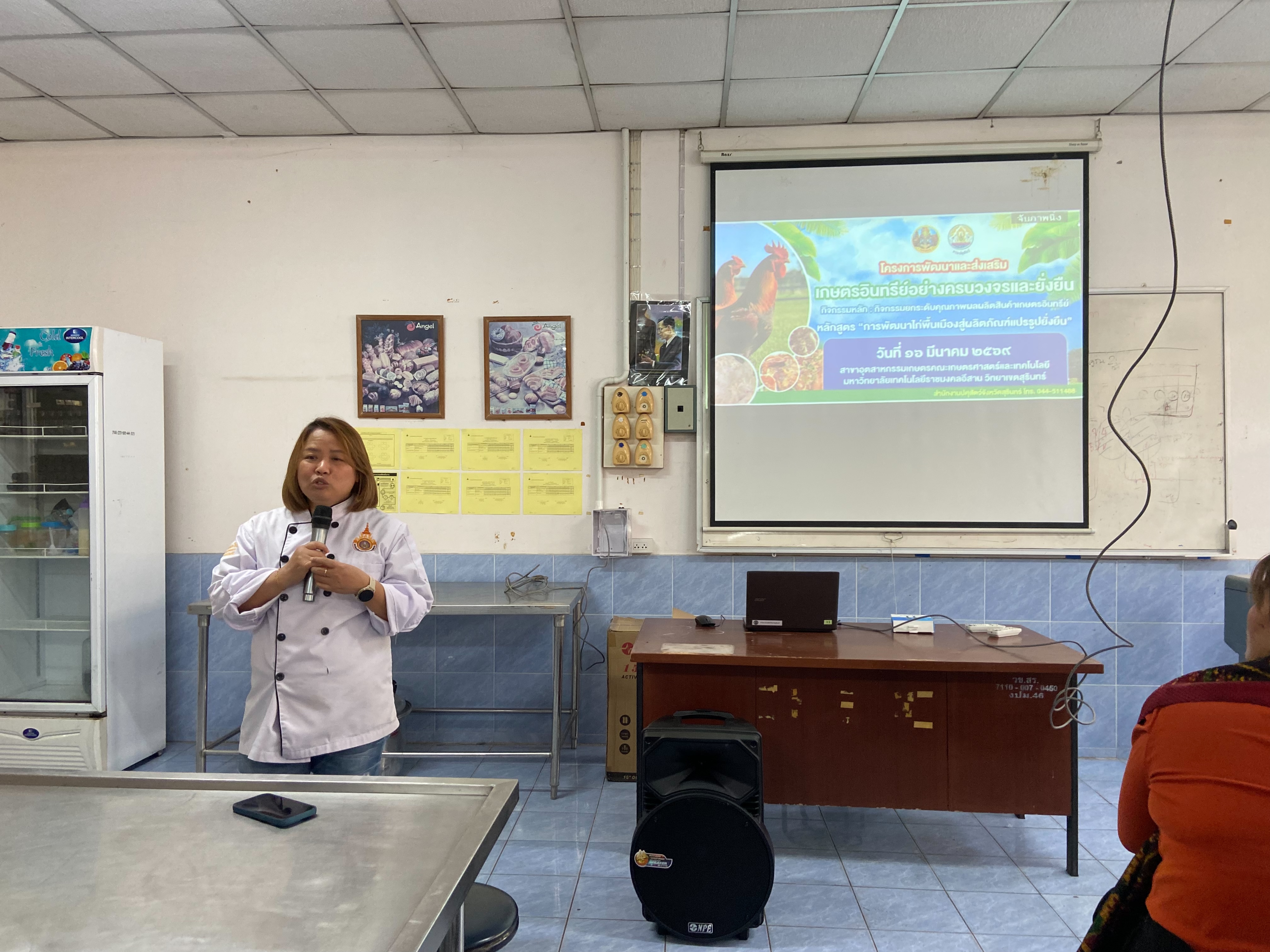 วันที่ 16 มี.ค 2569 น.สพ.อภิชัย นาคีสังข์ ปศุสัตว์จังหวัดสุรินทร์ มอบหมายให้ นายศรัณวัชร์ บุญเกิด หัวหน้ากลุ่มยุทธศาสตร์และสารสนเทศการปศุสัตว์ พร้อมด้วยเจ้าหน้าที่กลุ่มยุทธศาสตร์และสารสนเทศการปศุสัตว์ สำนักงานปศุสัตว์จังหวัดสุรินทร์ จัดโครงการตามแผนปฏิบัติราชการประจำปีของจังหวัด ประจำปีงบประมาณ พ.ศ. 2569 โครงการพัฒนางานพื้นที่โครงการพัฒนาและส่งเสริมเกษตรอินทรีย์อย่างครบวงจรอย่างยั่งยืน กิจกรรมหลัก : กิจกรรมยกระดับคุณภาพผลผลิตสินค้าเกษตรอินทรีย์ กิจกรรมย่อย : ส่งเสริมการเลี้ยงไก่พื้นเมืองอินทรีย์ PGS Surin อย่างครบวงจร ภาคปฏิบัติ รุ่นที่ 1 เป้าหมายผู้เข้าร่วมอบรมจำนวน 60 ราย ได้แก่ เกษตรกรอำเภอท่าตูมและอำเภอชุมพลบุรี ณ ห้องปฏิบัติการ สาขาอุตสาหกรรมเกษตร คณะเกษตรศาสตร์และเทคโนโลยี มหาวิทยาลัยเทคโนโลยีราชมงคลอีสาน วิทยาเขตสุรินทร์ โดยโครงการดังกล่าวได้มีกิจกรรมให้ผู้เข้าร่วมได้ปฏิบัติการแปรรูปอาหารจากไก่พื้นเมืองทั้งสิ้น 2 เมนู ได้แก่ แหนมไก่และไก่อบสมุนไพร ในการนี้ ได้รับเกียรติจาก อาจารย์ ดร.นุจรี สอนสะอาด อาจารย์ประจำสาขาอุตสาหกรรมเกษตร คณะเกษตรศาสตร์และเทคโนโลยี มหาวิทยาลัยราชมงคลอีสาน วิทยาวิทยาเขตสุรินทร์