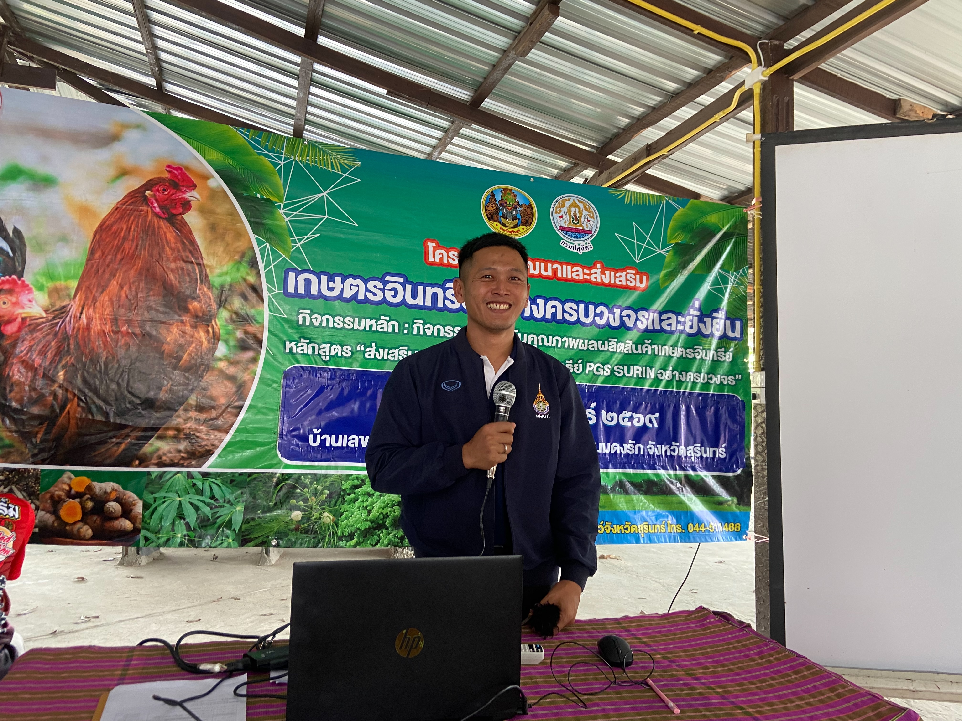 วันที่ 26 กุมภาพันธ์ 2569 น.สพ.อภิชัย นาคีสังข์ ปศุสัตว์จังหวัดสุรินทร์ นายศรัณวัชร์ บุญเกิด หัวหน้ากลุ่มยุทธศาสตร์และสารสนเทศการปศุสัตว์ นายกำชัย หมายจันทร์ ปศุสัตว์อำเภอพนมดงรัก เจ้าหน้าที่กลุ่มยุทธศาสตร์และสารสนเทศการปศุสัตว์ สำนักงานปศุสัตว์จังหวัดสุรินทร์ และเจ้าหน้าที่สำนักงานปศุสัตว์อำเภอพนมดงรัก ร่วมจัดโครงการตามแผนปฏิบัติราชการประจำปีของจังหวัด ประจำปีงบประมาณ พ.ศ. 2569 โครงการพัฒนาและส่งเสริมเกษตรอินทรีย์อย่างครบวงจรและยั่งยืน กิจกรรมหลัก ยกระดับคุณภาพผลผลิตสินค้าเกษตรอินทรีย์ กิจกรรมย่อย ส่งเสริมการเลี้ยงไก่พื้นเมืองอินทรีย์ PGS Surin อย่างครบวงจร หลักสูตร "ส่งเสริมการเลี้ยงไก่พื้นเมืองอินทรีย์ PGS Surin อย่างครบวงวงจร" เป้าหมายเกษตรกร 30 ราย รุ่นที่ 17 ณ อำเภอพนมดงรัก และได้รับเกียรติจากวิทยากรรับเชิญ นายสุภาพ มีโชค อาจารย์ประจำสาขาสัตวศาสตร์ คณะเกษตรศาสตร์และเทคโนโลยี มหาวิทยาลัยราชมงคลอีสาน วิทยาเขตสุรินทร์ ในการนี้ ได้มีนายพัฒนา พึ่งผล นายอำเภอพนมดงรัก ร่วมเปิดโครงการการอบรมในครั้งนี้ โดยเนื้อหาการบรรยายเกี่ยวข้องกับการเลี้ยงไก่พื้นเมืองและการปรับตัวเพื่อให้เข้าสู่ตลาด โรคและสุขาภิบาลในไก่ และการแลกเปลี่ยนความรู้ความเข้าใจในการเลี้ยงไก่พื้นเมือง ณ ศูนย์การเรียนรู้เพิ่มประสิทธิภาพการผลิตสินค้าเกษตร บ้านเลขที่ 43 ม.15 ต.บักได อ.พนมดงรัก จ.สุรินทร์