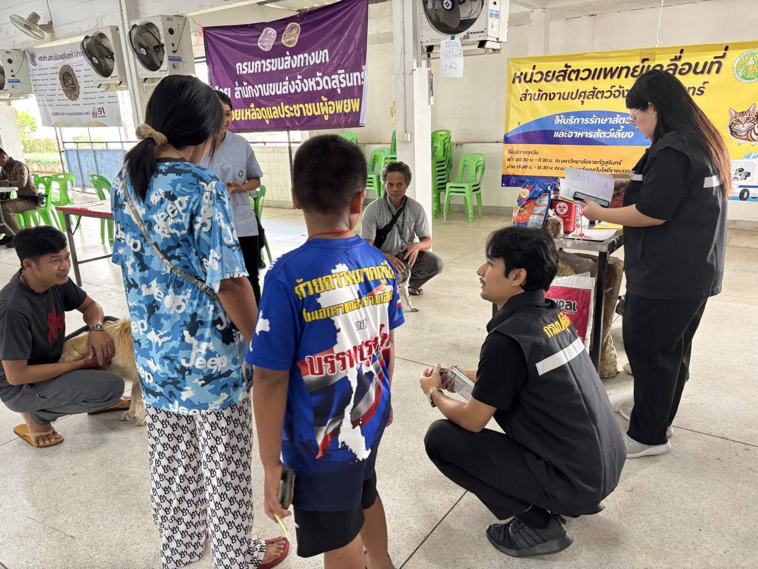 น.สพ.อภิชัย นาคีสังข์ ปศุสัตว์จังหวัดสุรินทร์ มอบหมายให้เจ้าหน้าที่จัดตั้งหน่วยสัตวแพทย์เคลื่อนที่ ณ ศูนย์พักพิงชั่วคราว ภายในมหาวิทยาลัยราชภัฏสุรินทร์ และมหาวิทยาลัยเทคโนโลยีราชมงคลอีสาน วิทยาเขตสุรินทร์ โดยมี นางสาวพรสวรรค์ วิไลรัตน์ นายสัตวแพทย์ปฏิบัติการ ปฏิบัติหน้าที่ประจำหน่วย การให้บริการประกอบด้วยการตรวจรักษาสัตว์เลี้ยงเบื้องต้น การให้คำแนะนำด้านการดูแลสุขภาพสัตว์ และการสนับสนุนอาหารสัตว์ เพื่อบรรเทาความเดือดร้อนและเสริมสร้างขวัญกำลังใจแก่ประชาชนในช่วงสถานการณ์พิเศษ