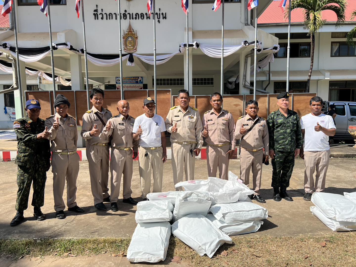 “ปศุสัตว์อุบลฯ มอบอาหารสุนัข–แมว แก่ราษฎรผู้เลี้ยงสัตว์เลี้ยง ที่ได้รับผลกระทบจากสถานการณ์ไม่สงบบริเวณชายแดนไทย–กัมพูชา ในพื้นที่อำเภอน้ำขุ่น”