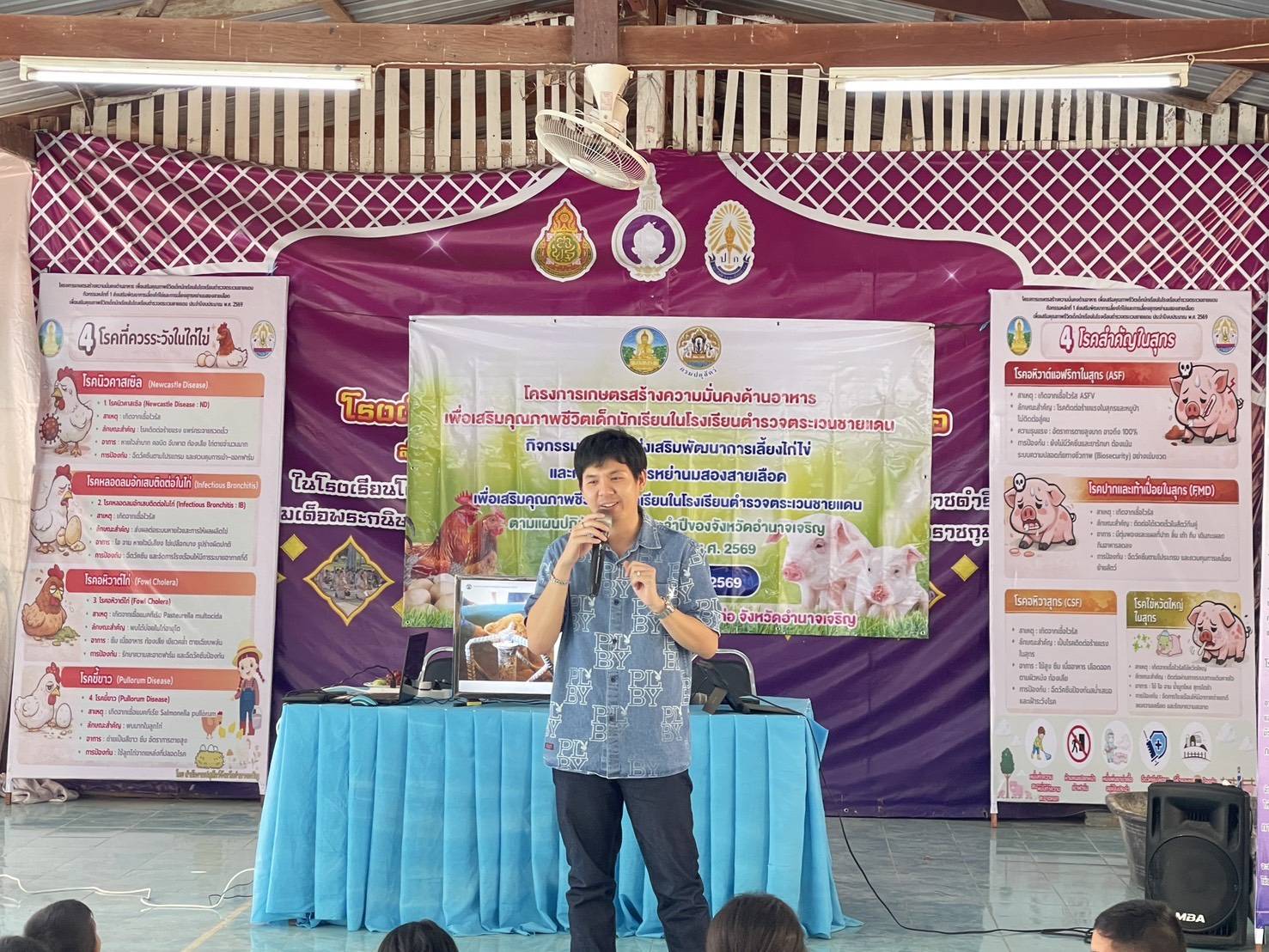 วันพุธที่ 11 กุมภาพันธ์ 2569 เวลา 08.30 น. นายสัตวแพทย์วรพงษ์ ศรีวิไลฤทธิ์ นายสัตวแพทย์ชำนาญการพิเศษ รักษาราชการแทน ปศุสัตว์จังหวัดอำนาจเจริญ มอบหมายให้กลุ่มส่งเสริมและพัฒนาการปศุสัตว์ ดำเนินโครงการตามแผนปฏิบัติราชการจังหวัดอำนาจเจริญ ประจำปีงบประมาณ พ.ศ. 2569 เพื่อดำเนินงานโครงการเกษตรสร้างความมั่นคงด้านอาหาร เพื่อเสริมคุณภาพชีวิตเด็กนักเรียนในโรงเรียนตำรวจตระเวนชายแดน กิจกรรมหลักที่ 1 ส่งเสริมพัฒนาการเลี้ยงไก่ไข่และการเลี้ยงสุกรหย่านมสองสายเลือด เพื่อเสริมคุณภาพชีวิตเด็กนักเรียนในโรงเรียนตำรวจตระเวนชายแดน ณ โรงเรียนตำรวจตระเวนชายแดนบ้านป่าก่อ อำเภอชานุมาน ซึ่งมีนักเรียนเข้าร่วมฝึกอบรมทั้งสิ้น 50 ราย โดยมีกิจกรรมฝึกอบรมให้ความรู้เรื่องการเลี้ยง การจัดการ การดูแลสุขภาพของไก่ไข่และสุกร รวมถึงการทำปศุสัตว์อินทรีย์ การทำเกษตรปลอดภัยตามหลักปรัชญาเศรษฐกิจพอเพียง ซึ่งการดำเนินงานในครั้งนี้ ได้รับความร่วมมือจากผู้เข้าร่วมอบรมเป็นอย่างดี